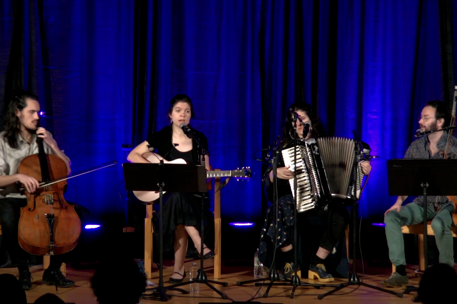 A Boston-based ensemble specializing in Yiddish song and klezmer. Levyosn takes its name from the Ashkenazi Hebrew word for the leviathan, a mythical sea creature traveling the world’s oceans collecting songs, krill, and dreams
